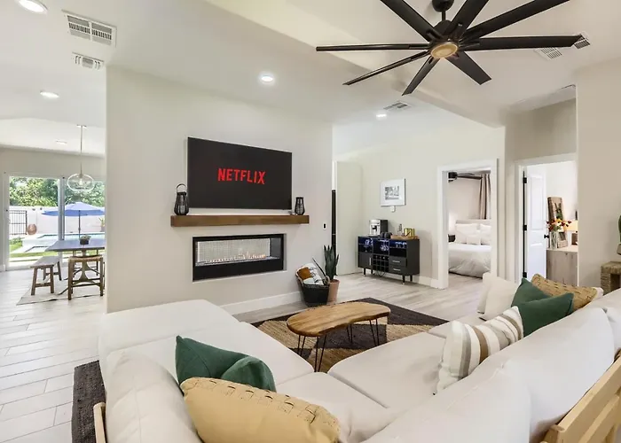 Modern Desert Getaway With Pool, Spa And Tesla Charger villa heeft een complete keuken uitgerust met een waterkoker, een koelkast en een oven. Deze woning ligt op een paar stappen verwijderd van Julioberto's Mexican Food, waar gasten kunnen genieten van Mexicaanse gerechten. Gasten kunnen deze accommodatie ook met de auto bereiken vanaf de luchthaven Phoenix Sky Harbor in 15 minuten.